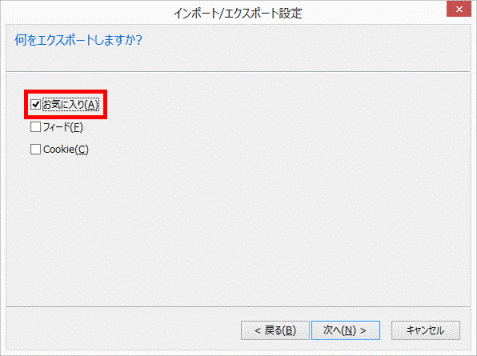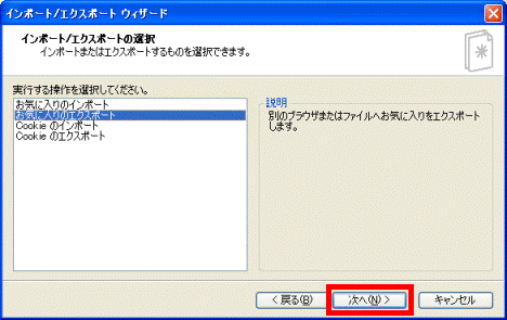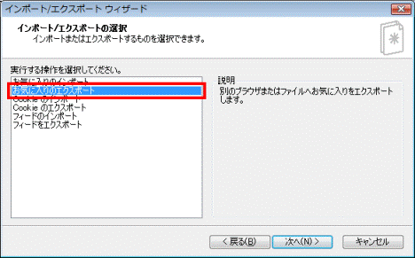次の手順で、「お気に入り」をエクスポート(バックアップ)します。