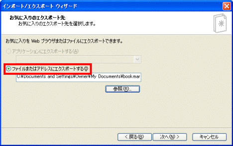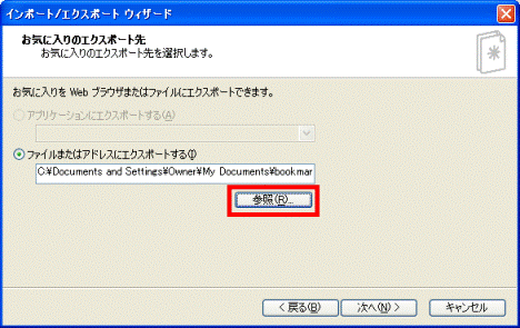 - 「どこにお気に入りをエクスポートしますか?」に戻ります。