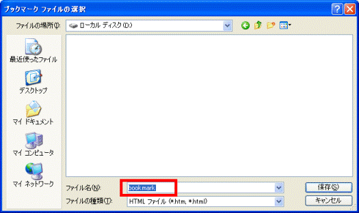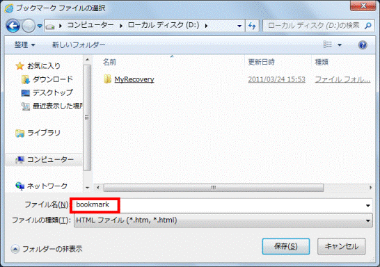- 「ファイル名」欄に、「bookmark」と表示されていることを確認します。