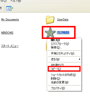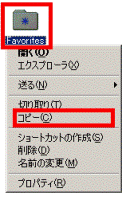 「Favorites」フォルダを右クリックし、表示されるメニューから「コピー」をクリックします。