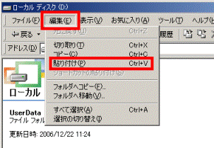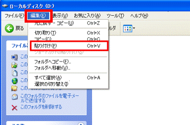 「編集」メニュー→「貼り付け」の順にクリックします。