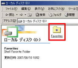 ここでは例として、「お気に入り」フォルダを、ローカルディスク(D:)、または(D:)に保存します。