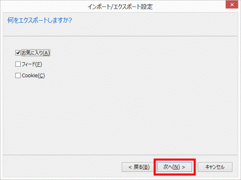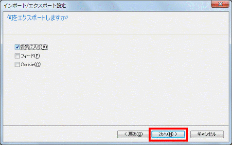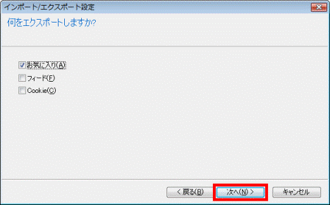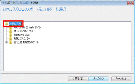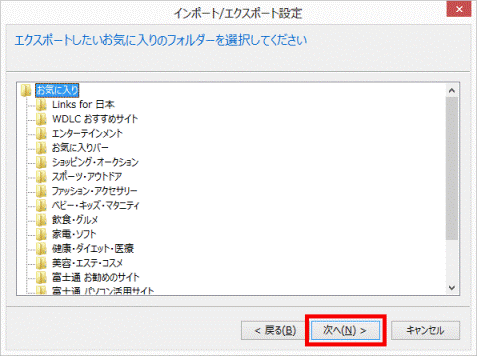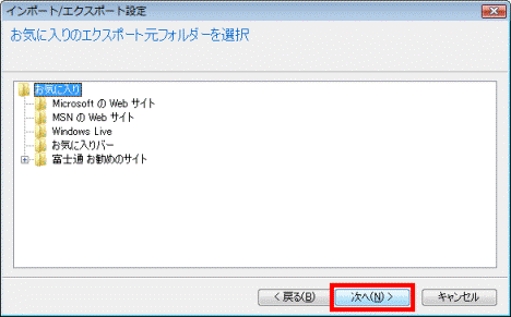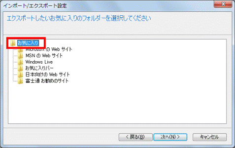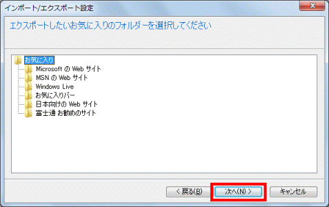 「Favorites」をクリックします。 - 「次へ」ボタンをクリックします。