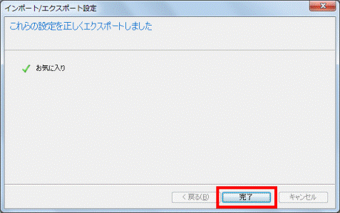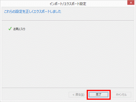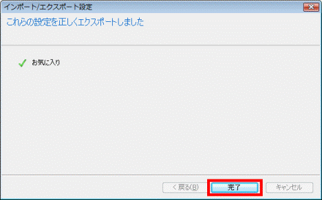 - 「インポート/エクスポートウィザードの完了」と表示されます。