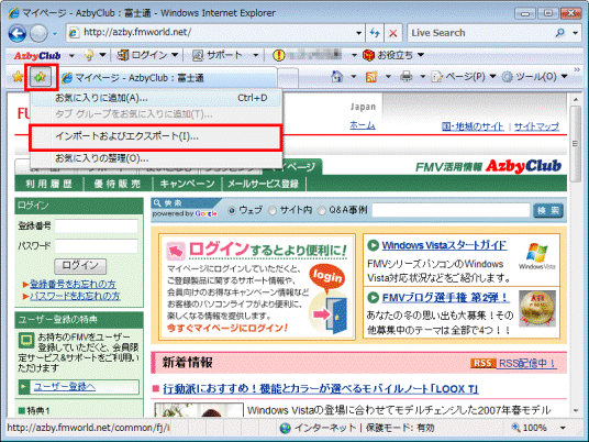 [Internet Explorer 7] バックアップした「お気に入り」を元に戻す方法を教えてください。 - このQ&Aは、Internet Explorer 7の「お気に入り」を個別にバックアップする方法です。