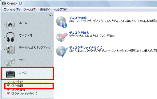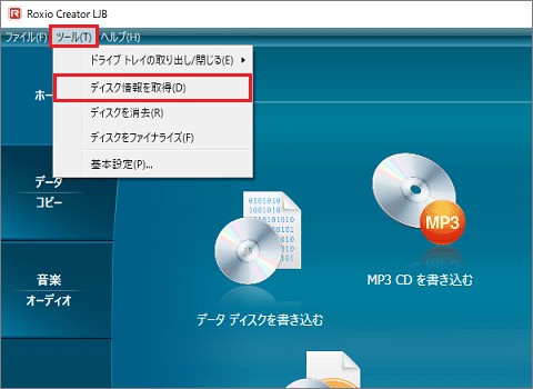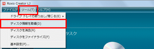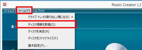 「ツール」メニュー→「ディスク情報を取得」の順にクリックします。