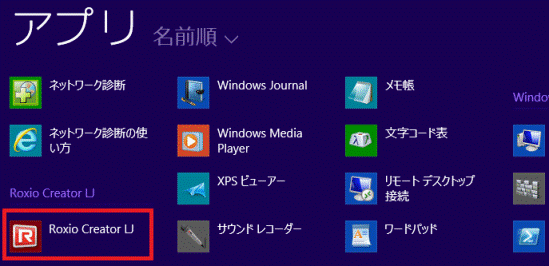 「スタート」ボタンをクリックし、すべてのアプリの一覧から「Roxio Creator LJ」→「Roxio Creator LJ」の順にクリックします。 アドバイス
