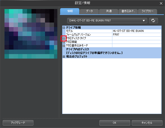 - 「対応ディスクタイプ」の左側にある、「+」をクリックします。