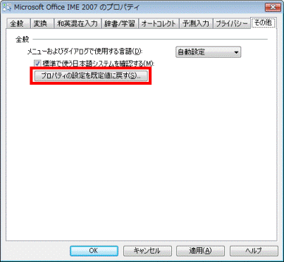 [Microsoft Office IME 2007] プロパティの設定を既定値に戻す方法を教えてください。