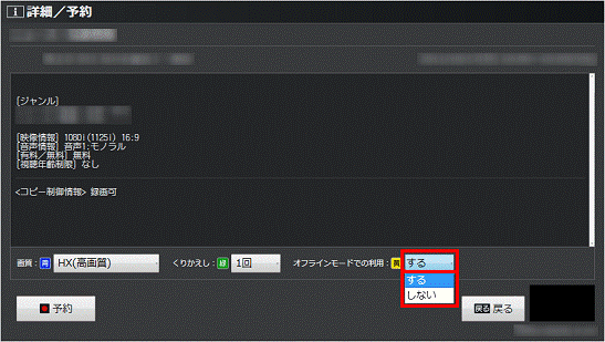アドバイス- 「はい」ボタンまたは「閉じる」ボタンをクリックしない場合でも、一定の時間が経過すると番組表に戻ります。