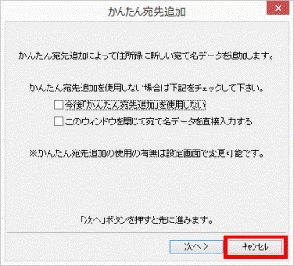 [筆ぐるめ Ver.19] 宛先を登録(追加)する方法を教えてください。 - 宛て名を登録しない場合は、「キャンセル」ボタンをクリックします。