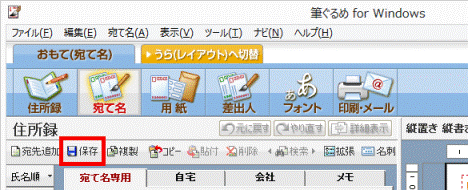 - 「おもて(宛て名)」タブの「住所録」ボタンが表示されていることを確認します。
