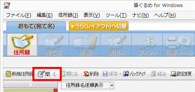 住所録を開き、目的の操作を行います。アドバイス「宛て名」ボタンや「印刷」ボタンなどは、住所録を開くまでクリックできません。