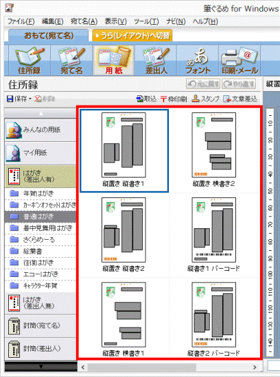 - 表示される一覧から、使用するはがきの種類をクリックします。