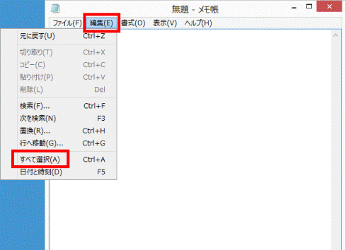 - パスワードを入力したら、「編集」メニュー→「すべて選択」の順にクリックします。