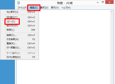 「編集」メニュー→「コピー」の順にクリックします。