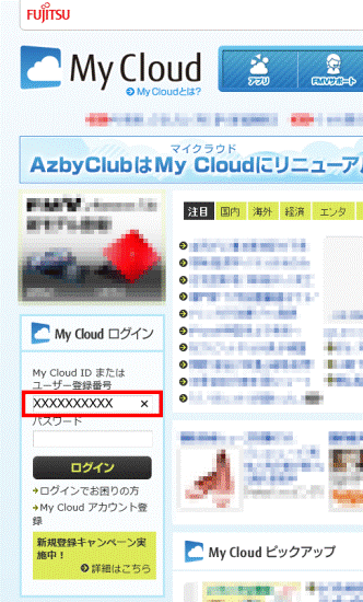 ここでは、例としてMy Cloud のログイン画面を表示します。