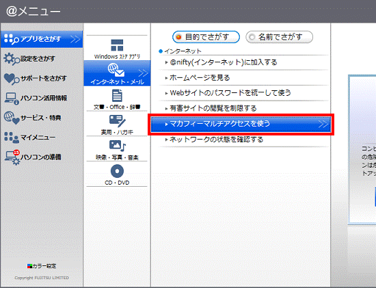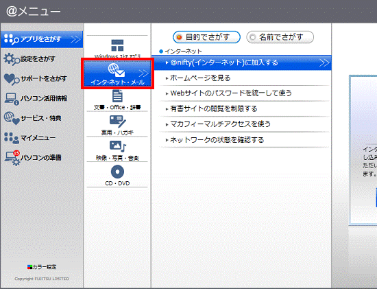 - ジャンルボタンの「インターネット・メール」ボタンをクリックします。