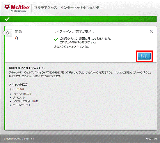 - 「フルスキャン が完了しました。」と表示されます。