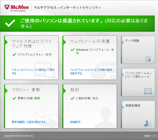 - マカフィー マルチアクセスに戻ります。