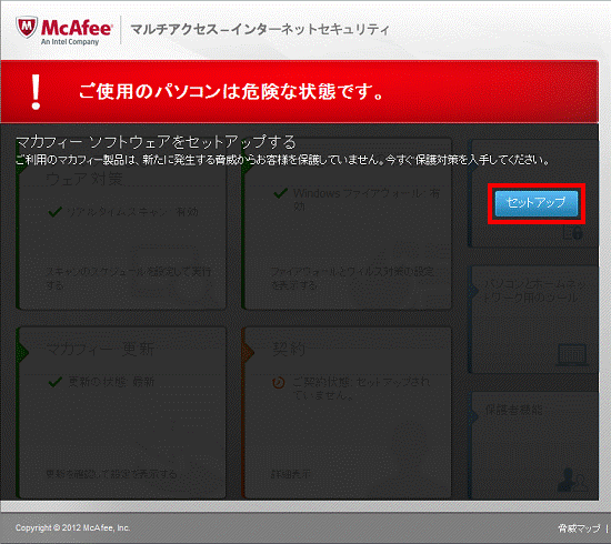 「マカフィーソフトウェアをセットアップする」と表示された場合