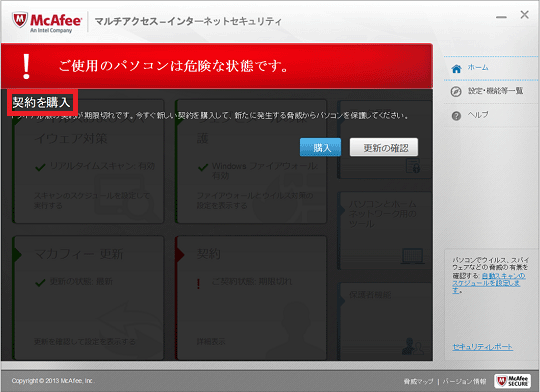 有効期間があるにもかかわらず「0日」と表示される場合は、もう一度、マカフィー マルチアクセスのプログラムを最新の状態に更新してください。