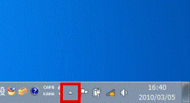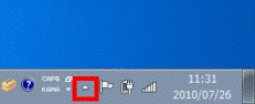 - 画面右下の通知領域にある、三角形のボタンをクリックします。