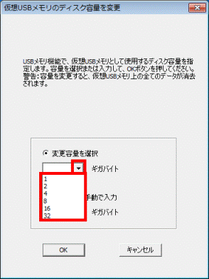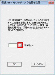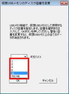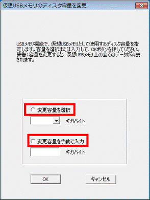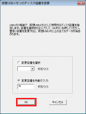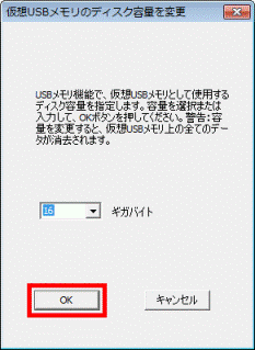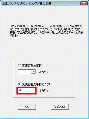 - 「仮想USBメモリのディスク容量を変更」が表示されます。