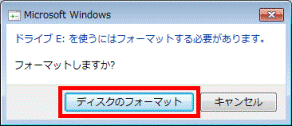 - 「ドライブ E: を使うにはフォーマットする必要があります。」と表示されます。