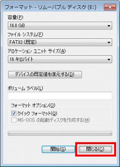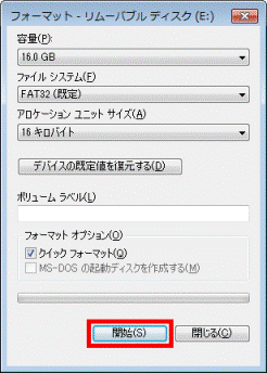 - 「フォーマット - リムーバブルディスク(E:)」に戻ります。