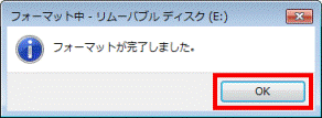 - フォーマットが完了すると、「フォーマットが完了しました。」と表示されます。
