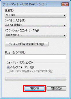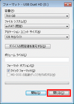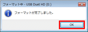 - 「フォーマット - USB Duet HD(E:)」に戻ります。