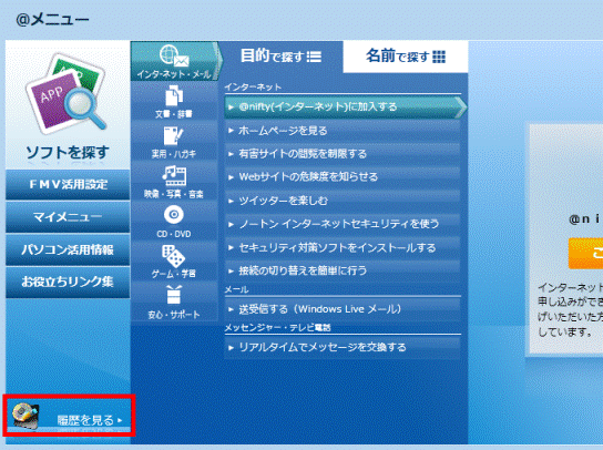 @メニューについて教えてください。(新しいウィンドウで表示)LIFEBOOK AH30/Eの手順は、次のQ&Aをご覧ください。