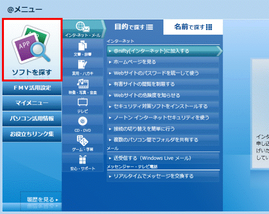 画面左側の一覧から、「ソフトを探す」をクリックします。