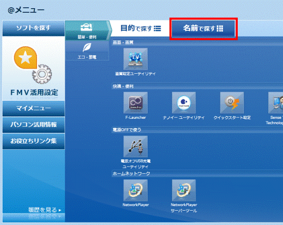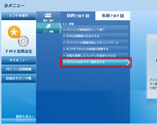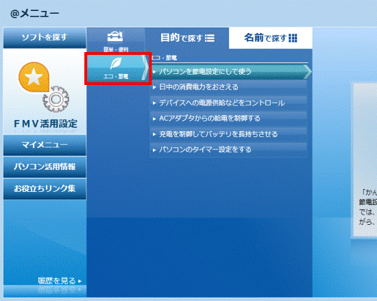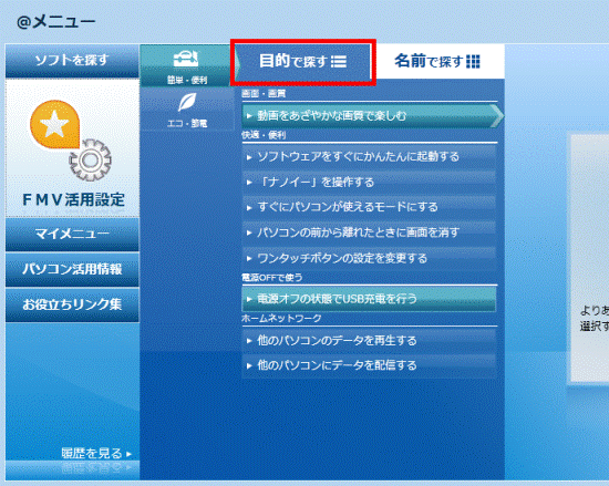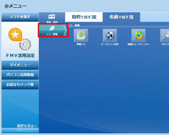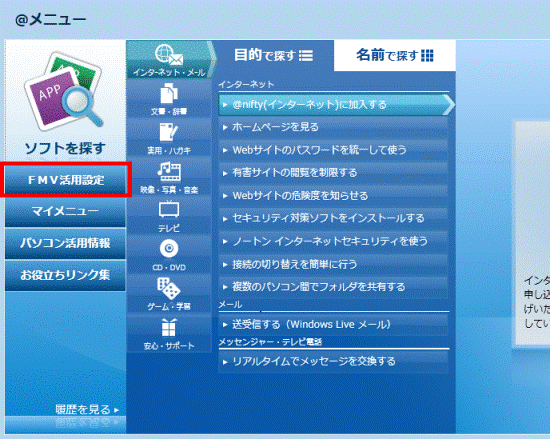 画面左側の一覧から、「FMV活用設定」をクリックします。