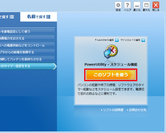 - 「PowerUtility - スケジュール機能」ボタンをクリックします。