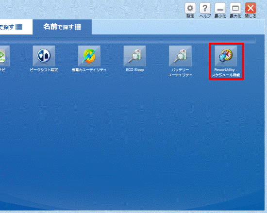 ここでは例として、パソコンの起動や終了のスケジュールを作成するPowerUtility - スケジュール機能を探します。