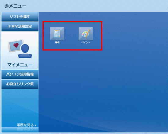 お使いの機種によって付属しているアプリケーションなどが異なるため、お使いのパソコンの@メニューの内容と画像が異なることがあります。