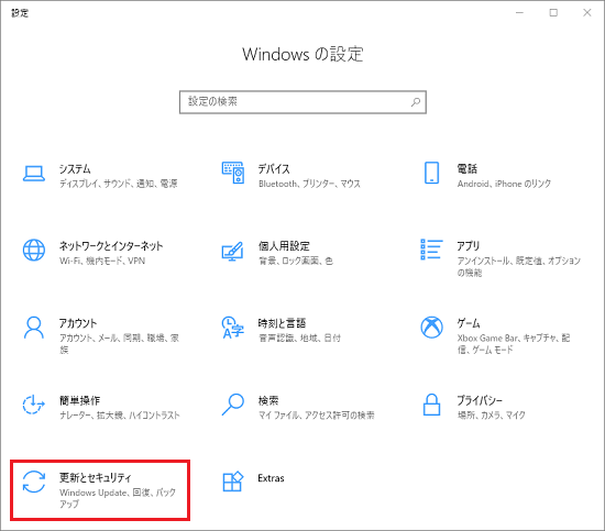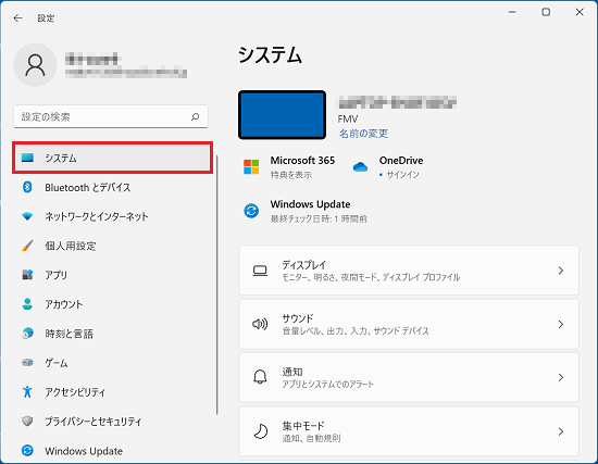 アドバイス「システム」が表示されていない場合は、「設定」の左にある「