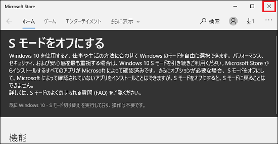 - Microsoft Storeの「×」ボタンをクリックして閉じます。