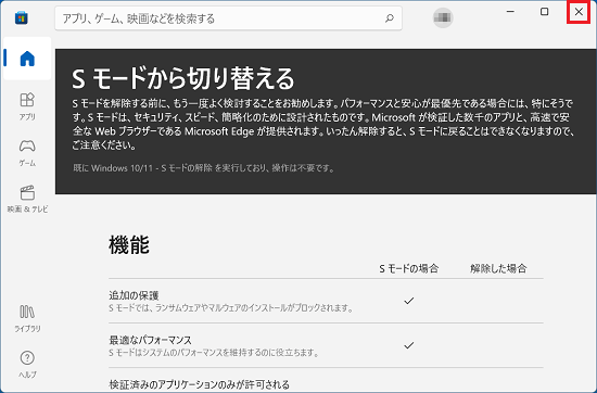 次の「S モードを解除する方法」の内容をよく確認してから、S モードを解除してください。