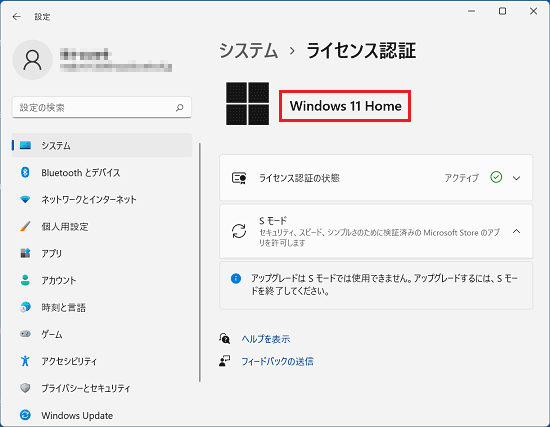 富士通アドバイザー サービス - S モードが解除され、Windows 11 Homeになったかどうかは、次のQ&Aの手順でも確認できます。