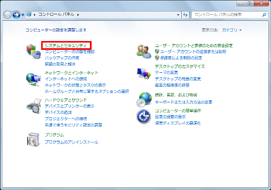 「セキュリティ」が表示されていない場合は、「Windows ファイアウォール」をクリックし、手順4.に進みます。 - 「システムとセキュリティ」が表示されます。