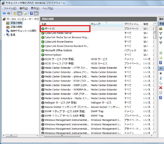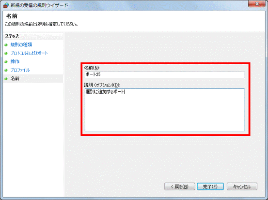 「25,80」のようにカンマを入れて入力すると、複数のポート番号を指定できます。 - 「-(ハイフン)」をつけて入力