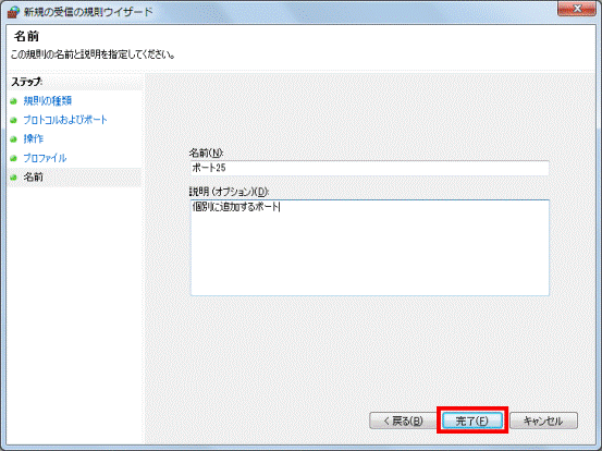 [Windows 7] Windows ファイアウォールで、手動でポートを開く方法を教えてください。