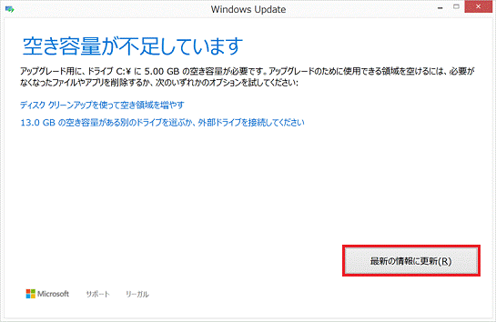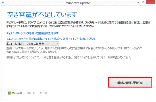 - 「最新の情報に更新」ボタンをクリックします。