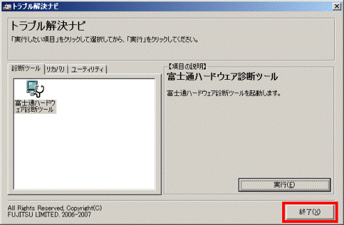 1. 富士通ハードウェア診断ツールの「終了」ボタンをクリックします。