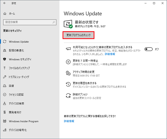 [Windows 10] Windows Updateの実行方法を教えてください。 ディスプレイドライバーとサウンドドライバーを再インストールします。