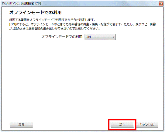 「オフラインモードでの利用」欄の「▼」ボタンをクリックし、表示されるメニューから「ON」または「OFF」をクリックし、次の手順に進みます。