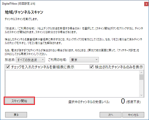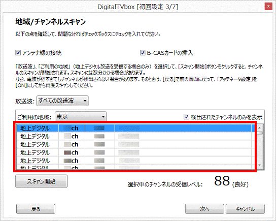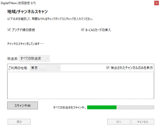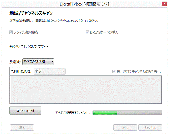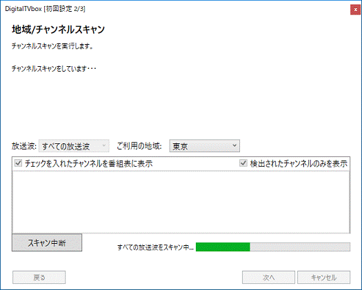 - チャンネルスキャンが開始されます。
